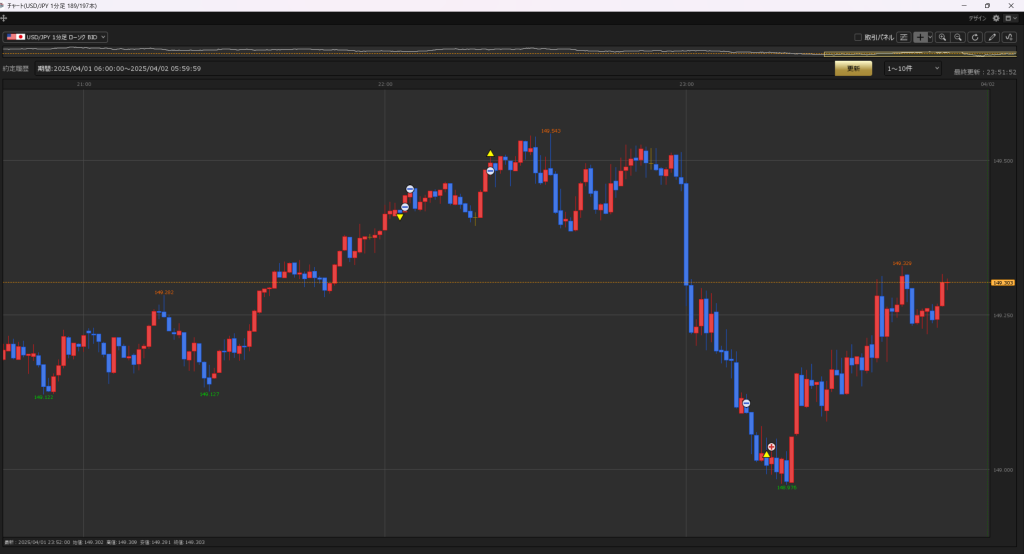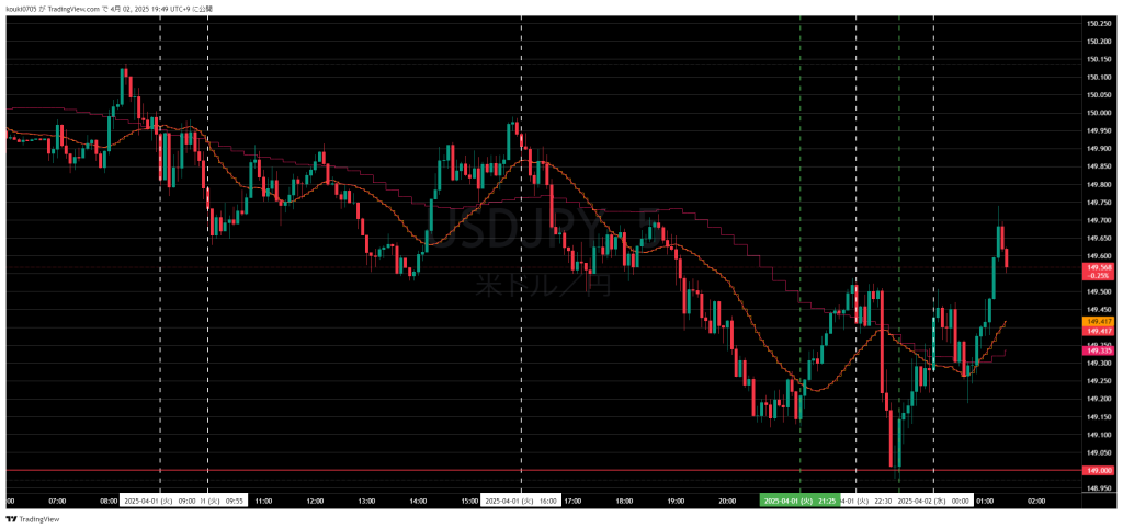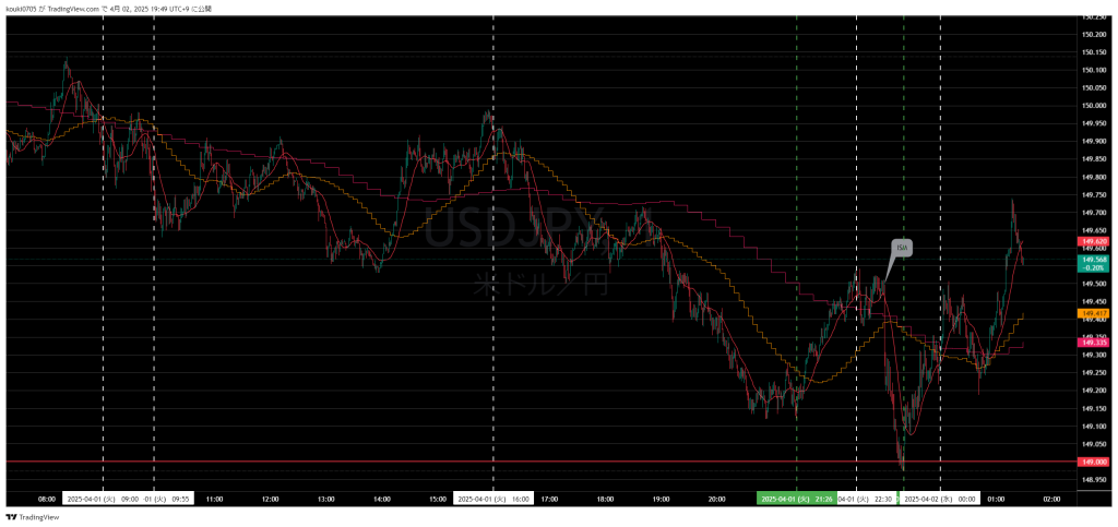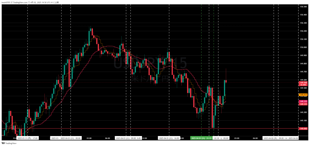 やっとエントリーできたのは、ちょうど天井になる149.500辺り