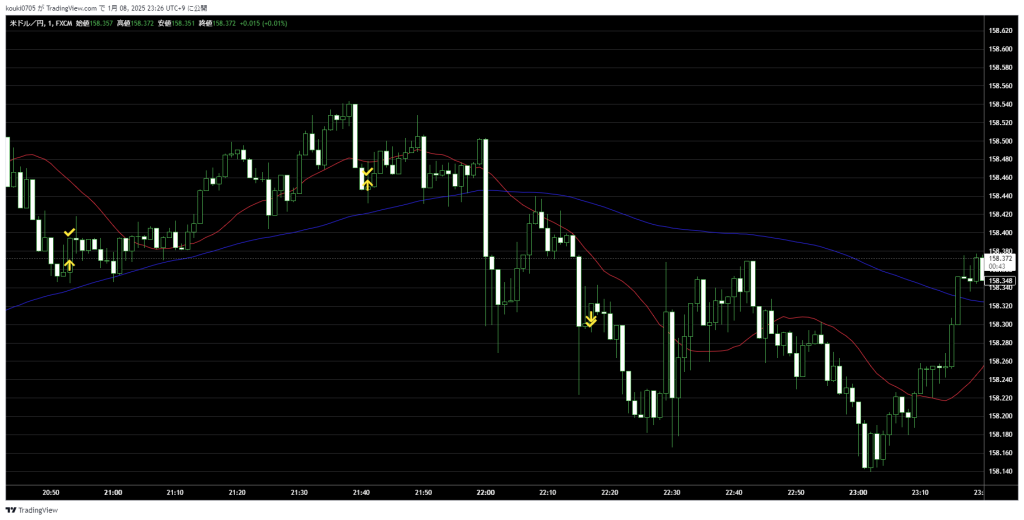 1/8 +570 トレード日記 X Facebook はてブ LINE コピー 2025.01.082025.01.11 勝率100% 今日は21:00前くらいから一応見てたんですが、 なんと3回しかトレードしてません。(笑) FOMC議事録が深夜にあるのでその影響からか 値動きが死んでました。 指標後の動きもイマイチ、、 ほんとにここという所を入れた感じです。 この値動きなら仕方ないですが、もっと自分の確度が高いポイントを 増やしてトレード回数を増やしていけたらなと思います。 明日も頑張る! 1月収益 +1,200
