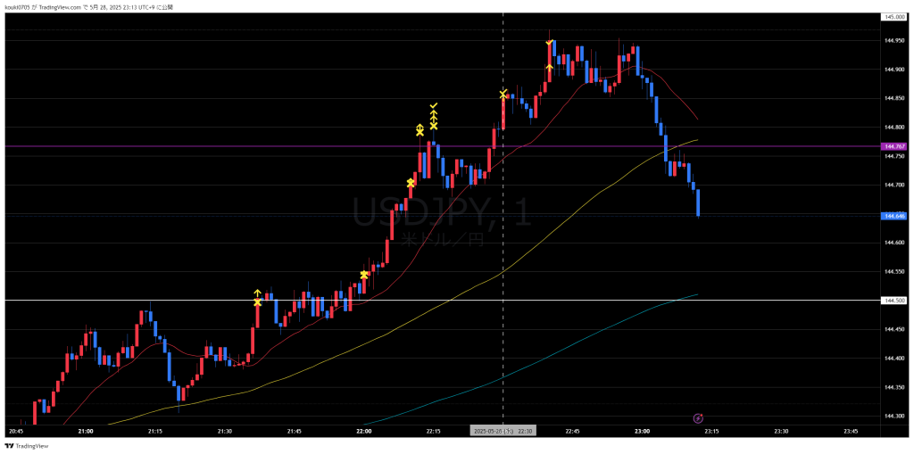 59分の足ではチキン利確になってしまったけどうまいこと取れた