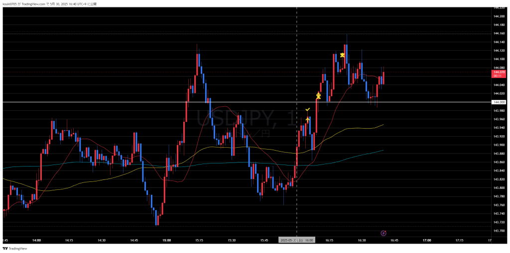 その後16:05分で時間の恩恵を受けながら抜けを取れ