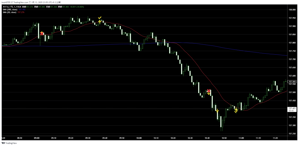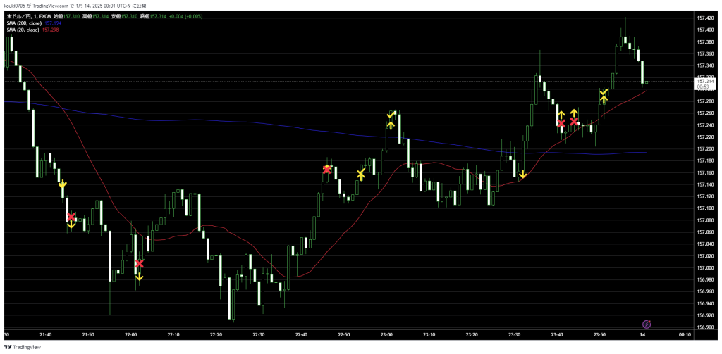 多分、元々値幅がない所、意識されている高安値ライン付近で
