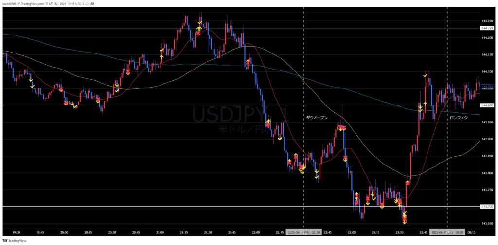 - 時間の後押し×ティックで効いているレートを抜けた時